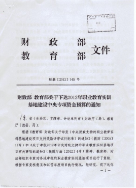 关于实训基地建设中央专项资金预算的通知