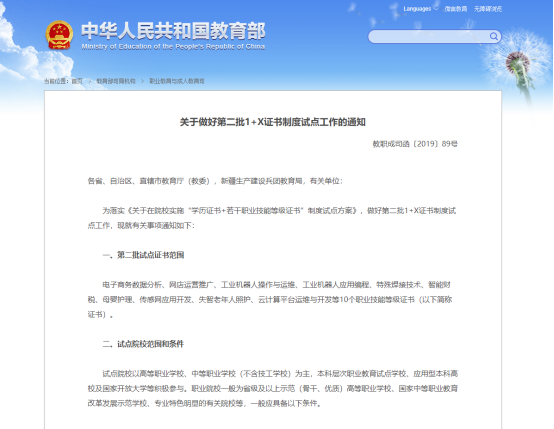 教育部第二批1+X证书试点资格通知和带头人培训班
