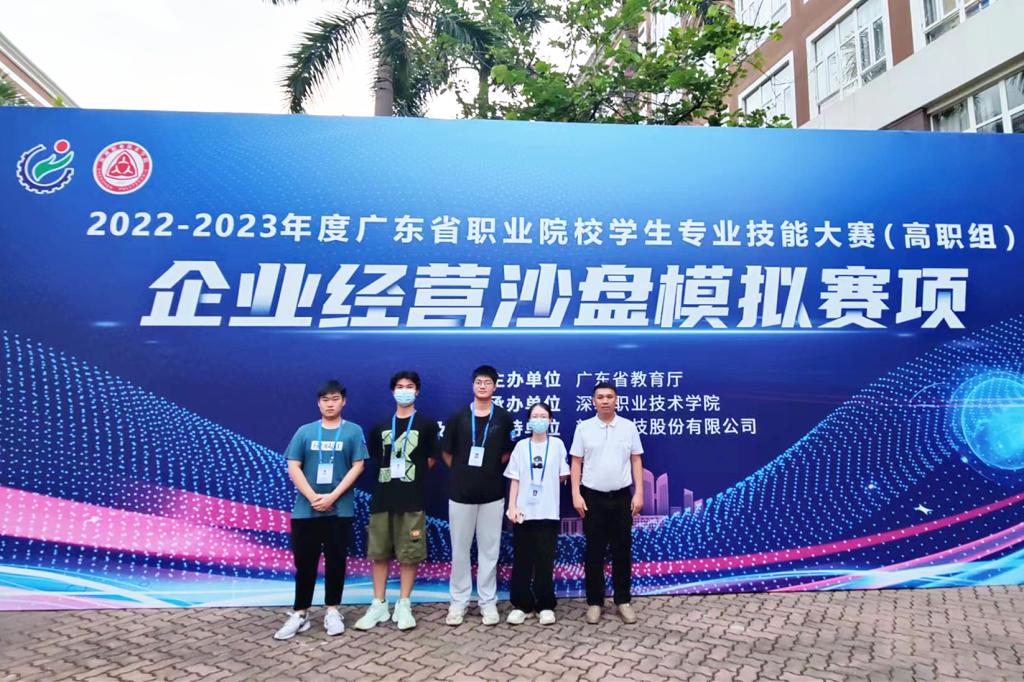 5月28日,由广东省教育厅主办深圳职业技术学院承办的2022-2023年度广东省职业技能大赛“企业经营沙盘模拟大赛”在深圳落下帷幕。来自广东省高职院校的56支队伍参加了此次竞赛。经过激烈角逐,我校财贸学院大数据与会计专业的李静璇、朱嘉荣、廖金城、黄文进四名同学组成的参赛队伍以分区第一全场第二名的成绩荣获一等奖,并晋级全国总决赛,该赛项由财贸学院王厚喜、刘爱松担任竞赛指导老师。