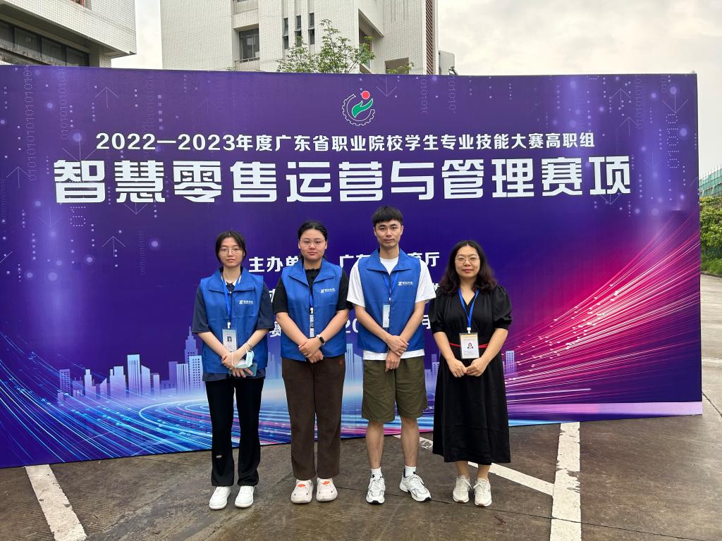 4月22日,2022-2023年度广东省职业院校学生专业技能大赛高职组智慧零售运营与管理赛项在广东职业技术学院高明校区举行,我校财贸学院营销211周越唯、郭雨晴、谢可欣三位同学组队参赛,李超锋、张淼担任指导老师。经过激烈的角逐,最终获得了三等奖。