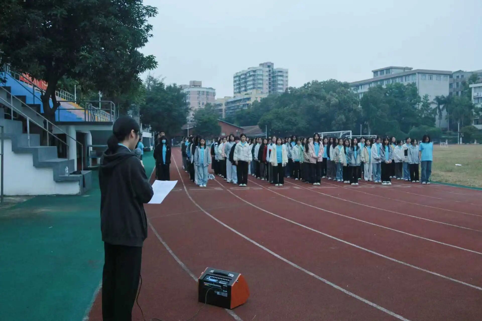 活动现场,身着统一院服的同学们井然有序、精神抖擞。随着主持人宣布仪式开始,国旗护卫队旗手们身姿挺拔、眼神坚毅,踏着铿锵有力的步伐庄严走向升旗台。“升国旗,奏唱国歌!”激昂的旋律响起,鲜艳的五星红旗伴随晨光徐徐升起,全体师生肃立行注目礼,目光紧紧追随着国旗直至其高高飘扬在校园上空,爱国之情在每个人心中激荡。