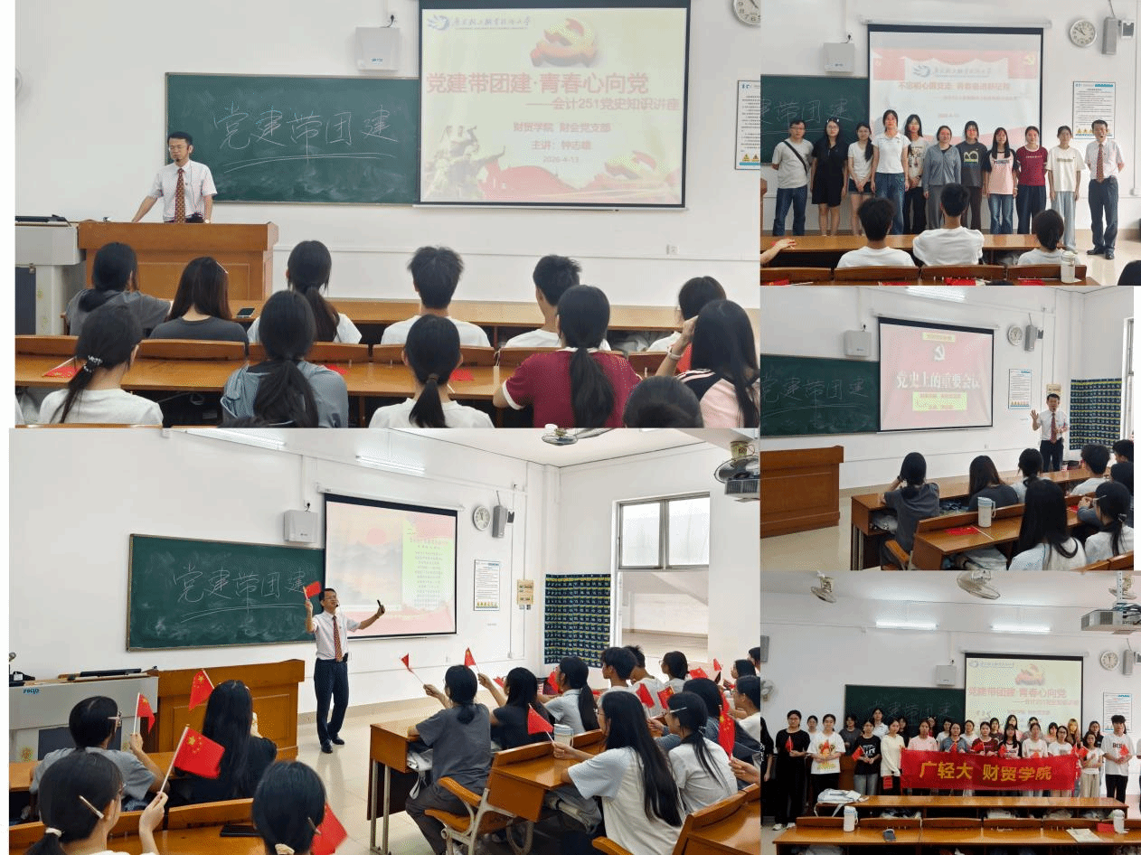 为深入落实新时代党建带团建工作要求,强化青年学生思想引领,2026年4月13日,财贸学院财会党支部在会计251班开展“党建带团建·青春心向党”党史知识专题讲座,由财会党支部党员、会计教研室主任钟志雄老师主讲。