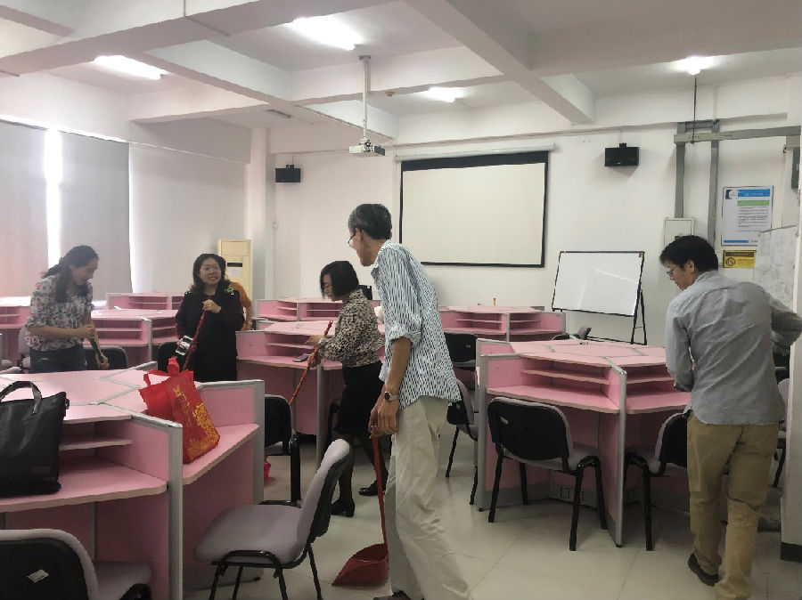 活动中,参加的党员同志都认真对待,团结协作,不怕辛苦劳累,将地上的杂物灰尘打扫干净,课桌细缝擦拭清洁,共同营造优良的师生上课环境。