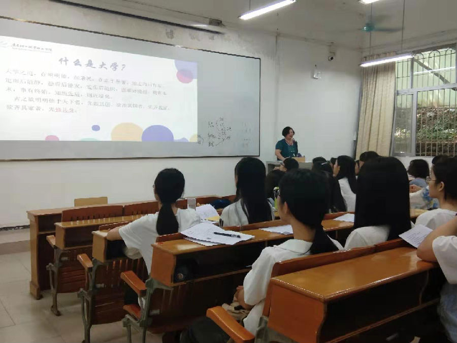 2019年9月23日下午2点,恰逢新生开学之际,我院财会党支部教师为了进一步践行“不忘初心、牢记使命”主题教育精神,按照学校相关部门要求,财会党支部老师特意举办了本次新生入学专业教育,活动中,滕萌老师从“什么是大学”和“大学之道”来引领学生树立崇高的理想,不忘初心,先树德再治学,做一个德材兼备的大学生;陈海雯老师则从大学生“不虚度的三年”入手,对专业证书要求、学分标准和毕业标准做了细致的阐述。新生们对这俩位老师的专业介绍都听得很入神。并表示要牢记初心,学好专业,做一个对社会有用的人才。