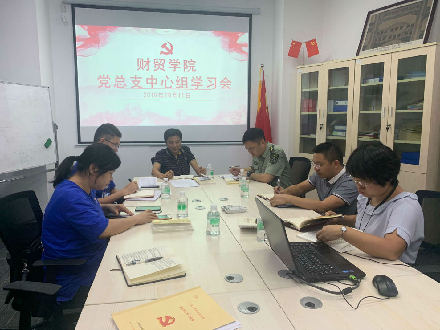 根据学校部署要求和我院主题教育实施方案的安排,财贸学院党总支于2019年10月11日下午3点在第二工业实训楼B506党建活动室召开中心组学习会,本次学习会作为我院主题教育集中学习研讨的一部分,结合杜书记分享的PPT《初心和使命》内容,以“习近平总书记关于初心使命的重要论述”为学习主题。杨伟柱书记在本次会议上做了主题发言,与会的其他同志纷纷做了交流研讨发言。
