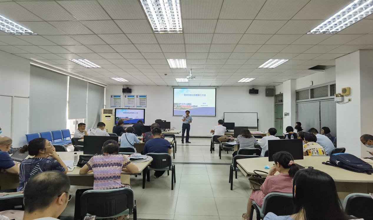 为进一步加强教师师德师风建设,不断提高教育教学质量,2022年6月28日下午15:30分,财贸学院全体教职工在广州校区B403开展师德师风建设学习动员会和教职工期末大会,财贸学院全体教职工积极参与。