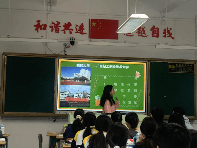 此外,团队成员带领学弟学妹们参观母校,回忆校园生活,并耐心解答他们的疑问。在宣传广东轻工职业技术大学时,成员们着重介绍了学校地理位置优越、师风优良、学习环境好以及不断发展进步等优势,引发了学弟学妹们的浓厚兴趣。