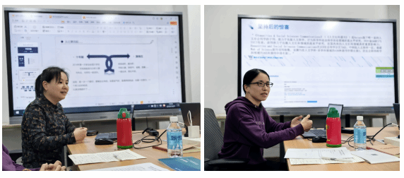 会上,刘永广教授分享了其在科研团队建设过程中的心得体会,并建议教师应积极关注交叉学科的发展动态,不断提升对前沿技术和工具的学习与应用能力,以提升教科研能力;肖威博士分享了其在浙江大学的访学经历,为与会者拓宽了视野,激发了新的思考灵感;李洁老师分享了指导学生比赛的收获,提到应在指导学生比赛的过程中凝练科研思路和研究方法,重视积累;陈钰老师则分享了近期发表的核心期刊论文,并结合该论文的艰辛发表历程谈科研路上坚持不懈的重要性。