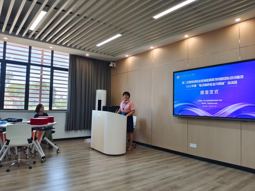 结业仪式上,武汉职业技术学院智能商务学院院长周蓉为学员颁发了培训合格证书。我院王晓燕副院长作为学员代表在仪式上进行了发言。她表示,在六天的培训学习中真切感受到了主办方热情周到的培训安排,培训内容形式多样,理实一体,强化学员专业实战经验和技巧,干货满满,不虚此行并由衷感谢。