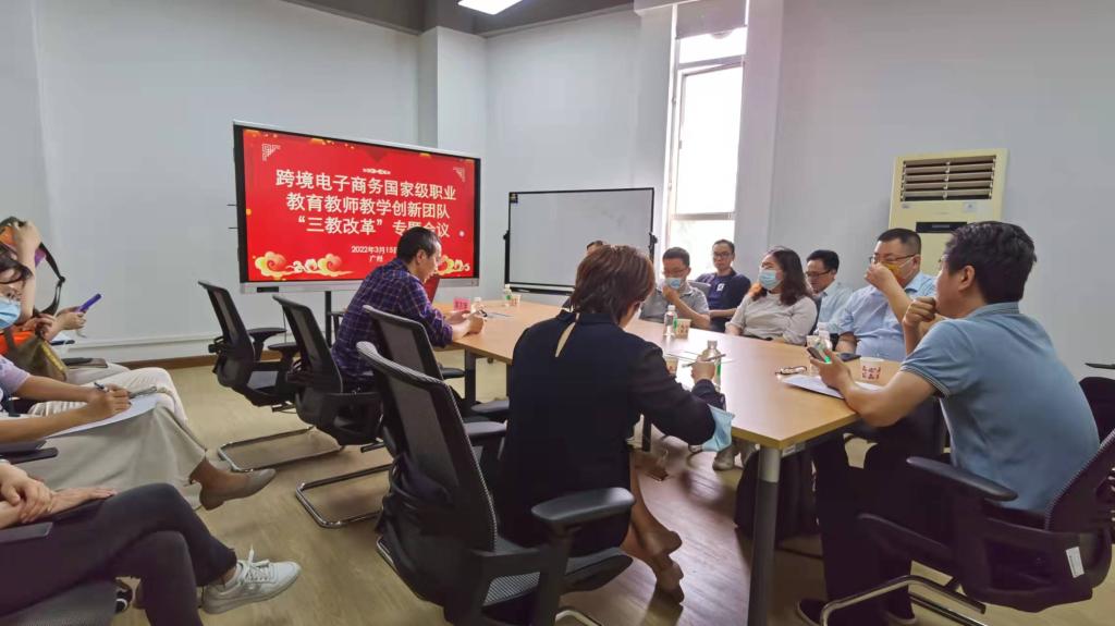 2022年3月15日,财贸学院在第二实训楼B406召开跨境电子商务国家级职业教育教师教学创新团队“三教改革”第二次专题会议。会议由韩宝国院长主持,团队骨干教师参加会议。