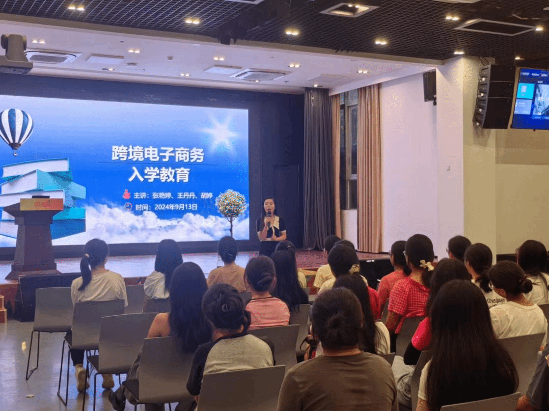 为增强专业认同感,明确未来的学习目标与生活规划,我院跨境电商与国际贸易专业于2024年9月13日在商演中心举办了针对2024级279名新生的入学专业教育活动。此次活动邀请了企业专家广州宝晨跨境有限公司王丹丹总经理为学生讲解行业业态与企业人才需求。