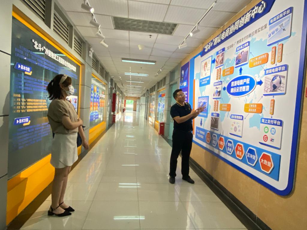 会后,在魏国平副院长带领下参观了财贸学院“北斗+”跨境电商协同创新中心。(图/文 肖威)