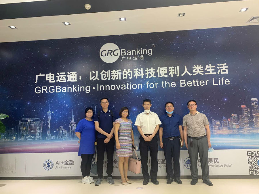 本次调研活动,首先由广电运通(股票代码:002152)旗下广电运通金融电子股份有限公司总经理邹均带领老师们对广电运通的AI人工智能展厅进行了参观。参观后双方就大数据+商务管理、区块链+财务等应用创新、新商科人才培养模式以及深化产教融合的具体措施、路径等进行热烈的交流、讨论。