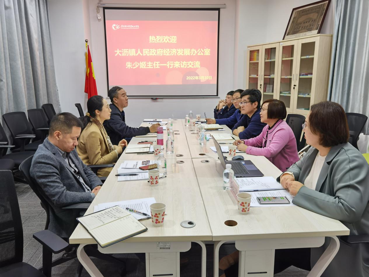3月30日上午,佛山市大沥镇人民政府经济发展办公室主任朱少姬,副主任钟剑锋、副主任黄俊海一行三人到我校广州新港校区,与财贸学院洽谈电商人才培养合作事宜,我校科学技术部负责人杨崇岭教授、副主任李飞星教授、财贸学院韩宝国院长、财贸学院实训中心主任王厚喜老师、学校产教科联合中心办公室主任郑则炯及助理陈利燕老师等热情地接待了朱主任一行。