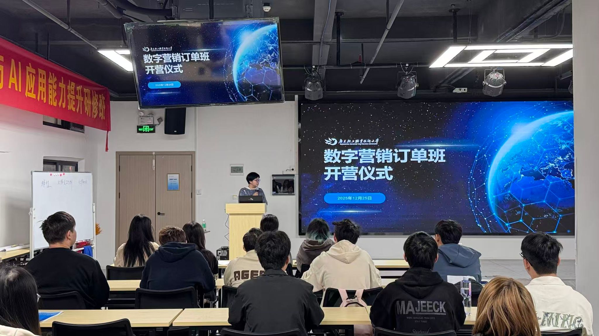 为深化产教融合、推进校企协同育人,提升学生就业竞争力,12月25日,财贸学院电子商务教研室与广州合一人才发展有限公司联合举办的“数字营销订单班”正式开班。电商教研室主任李胜刚、广州合一人才发展有限公司产产教融合总监刘晓蓉及订单班全体师生参加了开班仪式。
