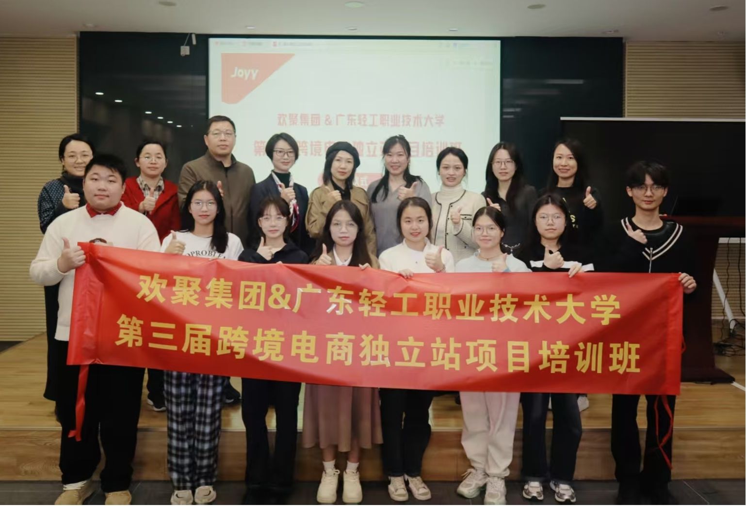 2025年1月8日,广东轻工职业技术大学实训楼 506 路演大厅内洋溢着热烈而庄重的氛围,欢聚集团与广东轻工职业技术大学联合举办的第三届跨境电商独立站项目结课仪式在此隆重举行。
