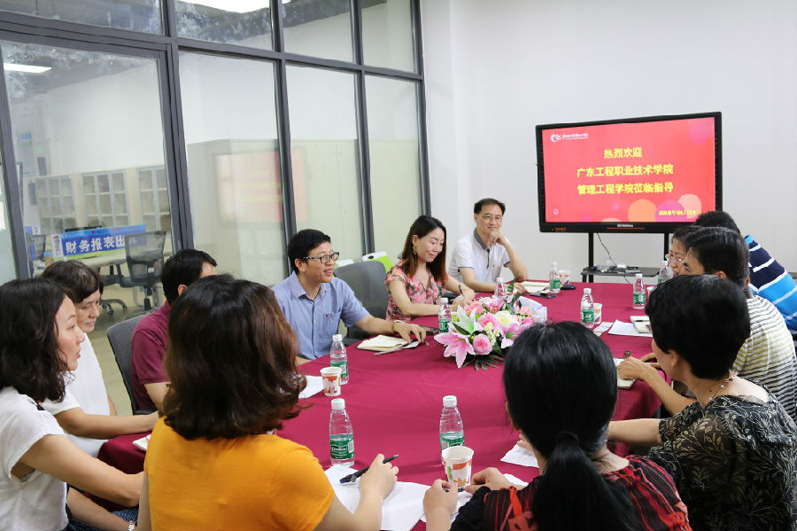 2018年06月29日上午,广东工程职业技术学院管理工程学院书记吴华长一行八人到访我院,我院党总支书记杨伟柱、教学副院长王晓燕在广州校区工业实训中心B406接待了来访客人。双方就专业群建设、二级学院治理以及党建工作方面的经验与方法进行了深入交流。会后,来访客人参观了我院商贸类专业实训室。物流教研室主任李超锋、市场营销教研室主任曾洁雯、电子商务教研室老师彭焕文和国际贸易教研室老师仝冰陪同接待。