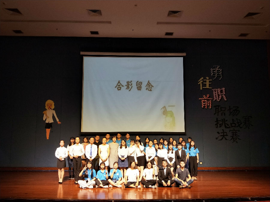 财贸学院第二届职场挑战赛“勇往直前”于2018年5月8日在南海校区图书馆报告厅举行了决赛,有10位选手参加了角逐。外语学院辅导员李伟东,管理学院辅导员李敏仪,财贸学院辅导员陈莹,以及分团委学生会主席团、各部长代表出席了本次大赛。