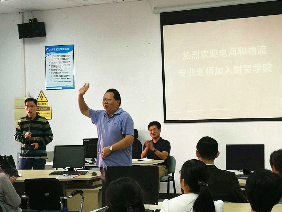 欢迎仪式上,电商和物流教研室主任方贵仁和李超锋分别对各自教研室的老师们进行了介绍,气氛和谐愉快,财贸学院全体教师以热烈掌声表示对电商和物流专业老师的欢迎。