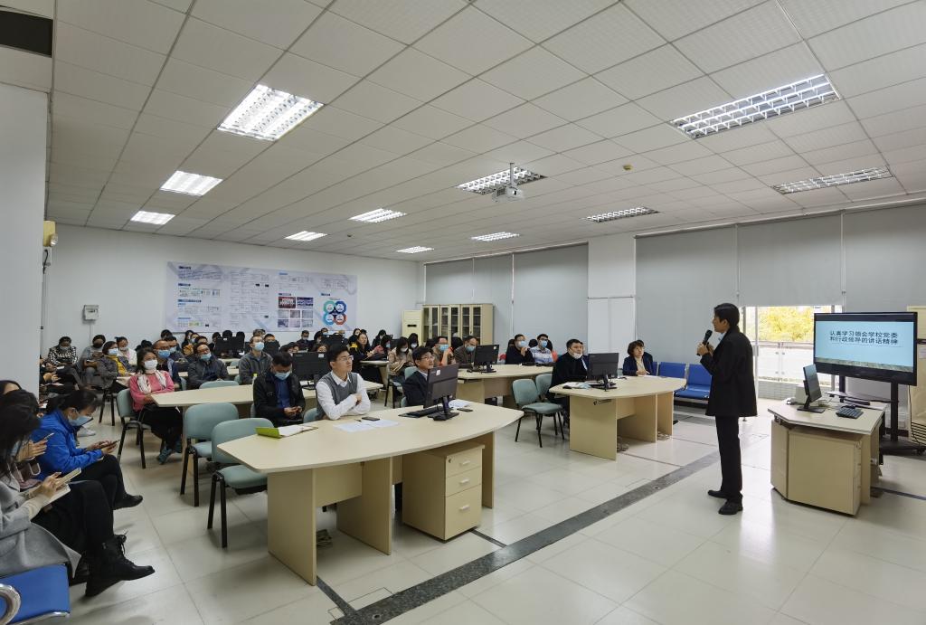 杨伟柱书记作了新学期动员讲话并传达了学校重要会议的精神。强调全体教职工要认真学习领会学校党委和行政领导的讲话精神,讲话内容指引了学校未来几年的建设思路。杨伟柱书记强调:第一,新学年要聚焦标志性成果,但不能忽略了内涵建设,不能唯标志性成果;第二,要一手抓安全维稳,一手抓建设发展,疫情防控、意识形态、政治安全等安全维稳工作放在所有工作的首位;第三,要“讲政治”,无论是党员还是非党员,都要讲政治素养。
