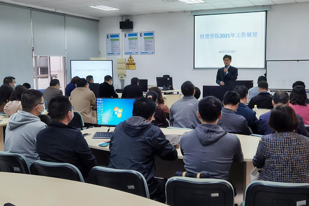 财贸学院教学副院长王晓燕、科研副院长魏国平、党总支副书记易广分别对新年度教学工作、科研及社会服务工作和学生工作中的重点及标志性成果任务进行了布置。