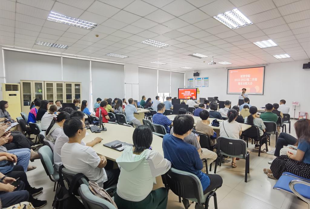 2023年6月26日上午,财贸学院院长韩宝国在第二实训楼B403主持召开了财贸学院2022-2023学年第二学期期末全院大会。