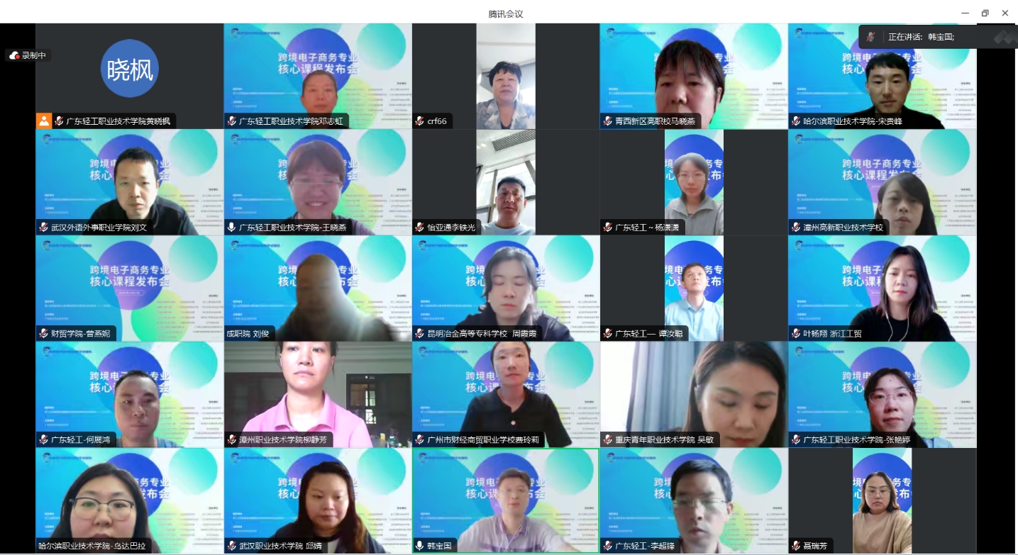 2023年10月13日上午10时,跨境电子商务专业核心课程发布会议成功举行,广东轻工职业技术学院等5所院校联合发布了跨境电子商务专业全部七门核心课程及配套资源建设成果。 该会议是在第二批国家级职业教育教师教学创新团队财经商贸(一)共同体指导下,由广东轻工职业技术学院主办,浙江工贸职业技术学院、昆明冶金高等专科学校、成都职业技术学院、广州市财经商贸职业学校等十余家单位共同协办。 来自全国15个省市、32所院校的90位代表参加了会议。