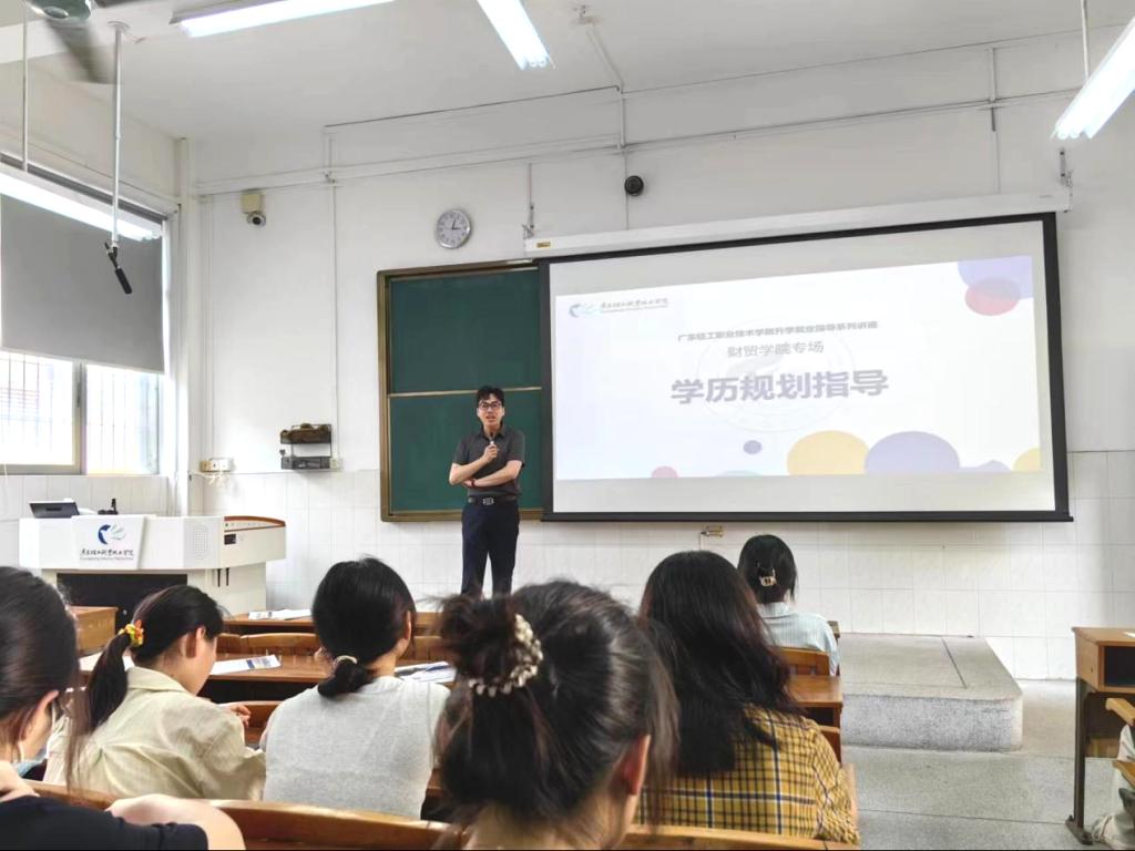 本次活动邀请了广东轻工职业技术学院继续教育学院陈佳航老师作为主讲嘉宾,陈老师多年以来担任普通专升本、自学考试、职业资格证书等多个领域的教学任务,擅长解读最新政策信息、熟悉广轻学子求职心理,能够精准把握学生在学历提升、职业规划的需求。