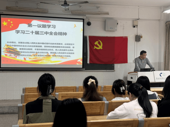 党支部书记蔡彬老师带领全体党员学习了党的二十届三中全会精神。全会强调了教育、科技、人才是中国式现代化的基础性、战略性支撑,必须深入实施科教兴国战略、人才强国战略和创新驱动发展战略。同学们作为新时代的大学生,要努力学好专业知识,做刻苦学习锐意进取的模范。
