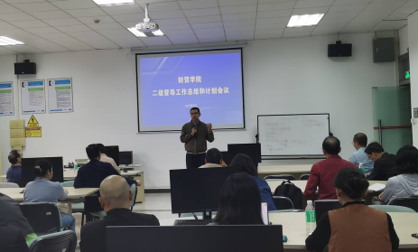 2025年3月11日下午3时,财贸学院在第二工业实训楼B403召开了二级督导工作总结和计划会议。校督导室郑心成督导、财贸学院领导班子以及全体专任教师出席了此次会议。