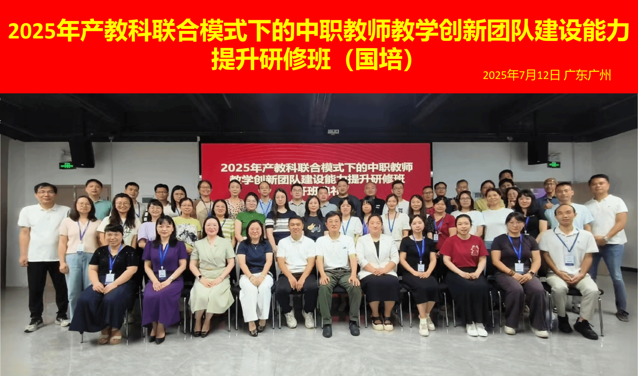 7月12日,2025年产教科联合模式下的中职教师教学创新团队建设能力提升研修班(国培)在广东轻工职业技术大学新港校区顺利开班。广东轻工职业技术大学财贸学院院长韩宝国、财贸学院党政办主任王厚喜、马克思主义学院刘淑娟教授等嘉宾以及全体参训学员共同出席了开班典礼。开班典礼上,韩宝国院长致辞,介绍了学校和财贸学院培训开展的相关情况,并代表学院向参训学员表示热烈欢迎,期待学员们在培训后都能有所收获。随后,刘淑娟教授为班级进行破冰分组,并带来了以“加强师德师风建设,弘扬教育家精神”为主题的第一堂思政课。