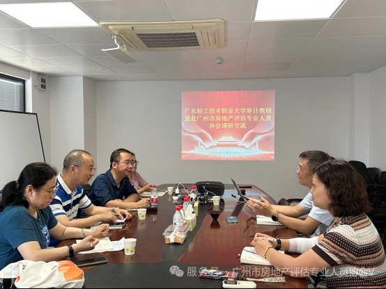 为深化产教融合,精准对接行业需求,进一步优化专业建设和人才培养方案,2025年7月15日,我校审计教研室主任郑伟俊带领专业教师团队一行4人赴广州市房地产评估专业人员协会进行专题调研。协会秘书长谭少珺、常务副秘书长李标热情接待并参与座谈交流。