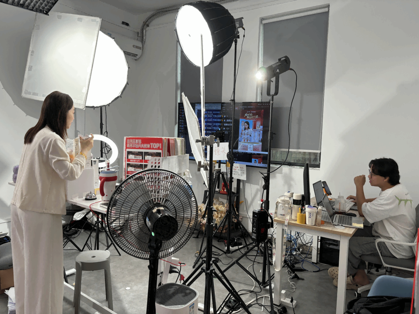 在实地考察环节,调研组参观了企业研发创新中心,观摩从市场需求分析到产品落地的全流程数字化管理体系;参观电商运营中心,学习"数据驾驶舱"系统在流量运营和用户画像中的实际应用;参观智能直播间,体验AI虚拟主播与真人主播协同作业的创新模式。