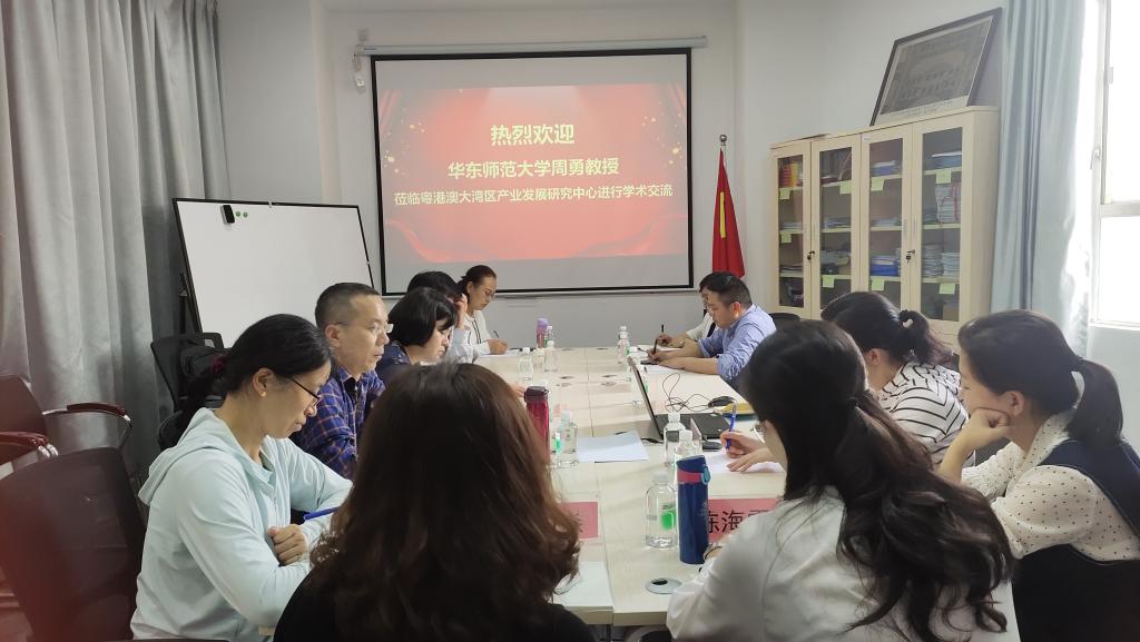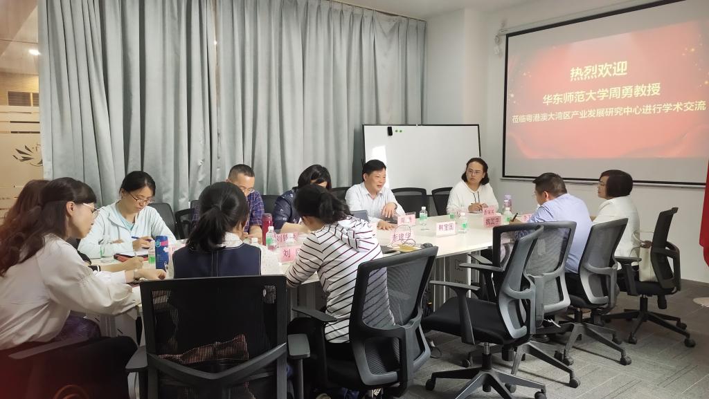 2021年3月18日,华东师范大学周勇教授莅临广东省普通高校重点人文研究基地——粤港澳大湾区产业发展研究中心进行学术交流。基地负责人李飞星教授、魏国平副院长等人热情地接待了周勇教授。