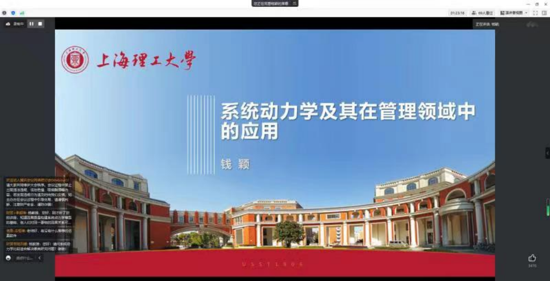 2023年6月2日下午,粤港澳大湾区产业发展研究中心通过线上腾讯会议举办了第十五期学术讲座。此次讲座的主讲人邀请到的是上海理工大学的钱颖教授,分享的主题是:“系统动力学及其在管理领域中的应用”,陈钰博士主持了本次讲座。财贸学院的师生,其他学院以及中职部老师都积极参加了本次讲座。