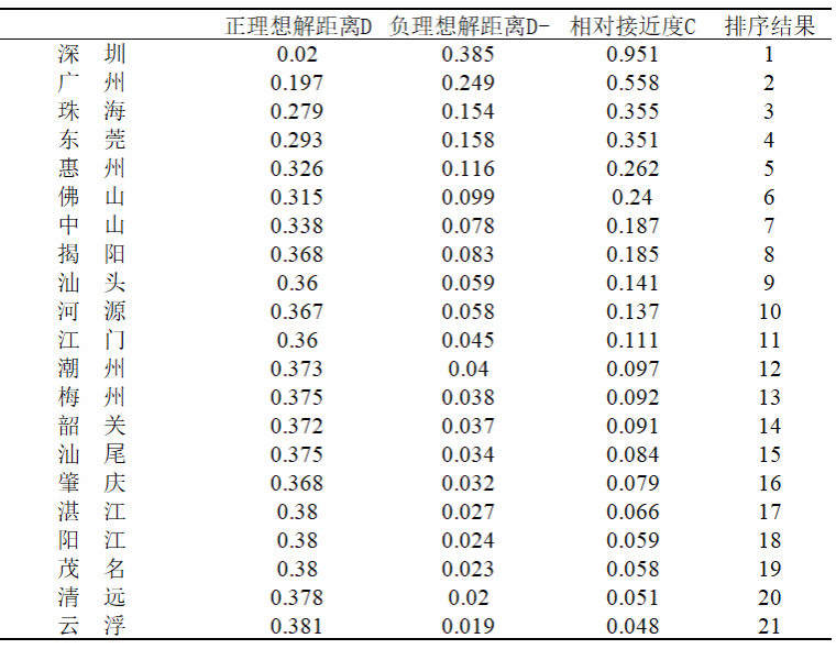 表1 基于熵权-TOPSISI法得出的综合评价结果