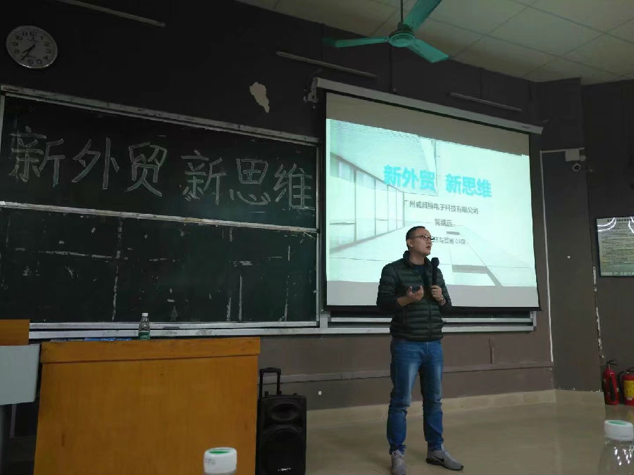 12月1日晚,国际经济与贸易专业就业创业交流会在南海校区教学楼4101举行,广州威湃狮电子科技有限公司总经理黄德远为同学们开展了题为“新外贸·新思维”的讲座。