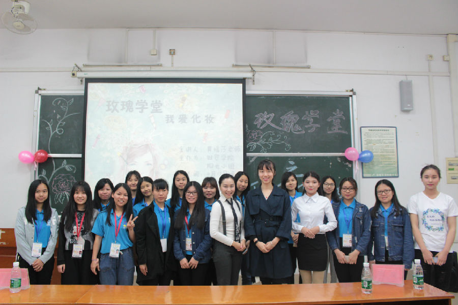 2017年4月13日晚上,财贸学院在教学楼2106举办了玫瑰学堂系列讲座之“我爱化妆”。本次讲座邀请了轻化工技术学院化妆