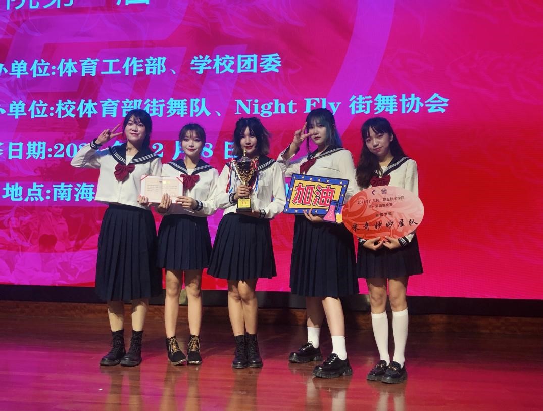 12月8日,财贸学院组织的两支舞蹈队米奇妙妙屋和Burning队在广东轻工职业技术学院第一届街舞比赛中获得佳绩。其中,米奇妙妙屋队获得一等奖,Burning队获得三等奖,郭剑老师、黄凯旋老师分别作为两支队伍的领队。
