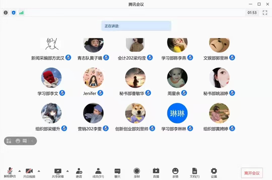 2021年8月11日19:45至22:00,财贸学院分团委在线上召开了2021-2022学期第一次共青团工作会议暨“青年大学习”工作推进会。参与此次会议的有财贸学院分团委书记赖炜祎老师、19级团学干部以及20级储备成员。