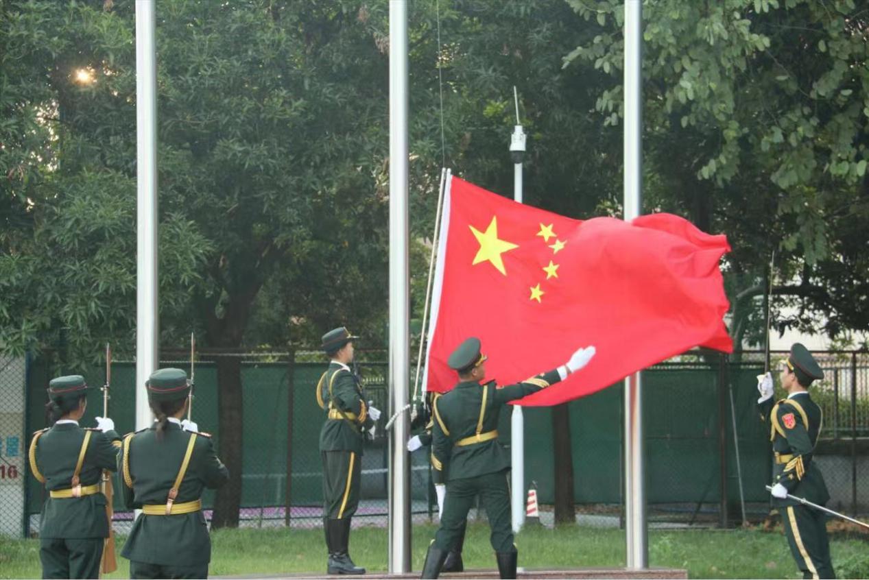 我院举行此次升旗仪式意义深远,不仅让同学们深刻体会了爱国主义,还激励同学们奋发图强,继续发扬革命先烈的爱国主义精神,勇于担当当代青年的神圣使命,为祖国繁荣与民族复兴而努力。