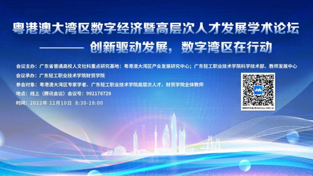 2022年12月10日“粤港澳大湾区数字经济暨高层次人才发展——创新驱动发展,数字湾区在行动”的学术论坛在线上成功举办!